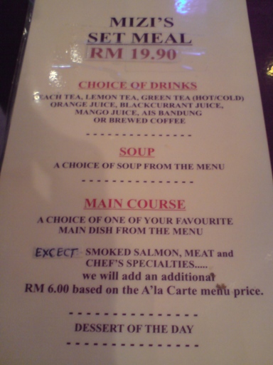 Mizi Bistro was located at New World Park. For reservation, please call 04-2272921. Make sure you reserve a place before you go!
