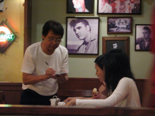 I also manage to snap the photo of the boss. He is taking the order from the customers.