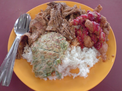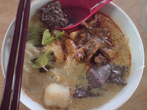 The steamboat will divide into 2 parts, one with the normal soup and one with tomyam. I like the tomyam soup. 🙂 Around the bowl, you can fried your food on top.