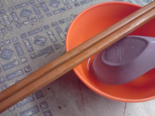 They gave us the bowl and chopstick first. When I see the chopstick, I squeeze my eyes like this >.<