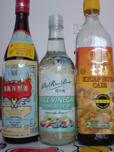 These are the Soya Sauce, Rice Vinegar and Hua Tiao Chiew that I used.