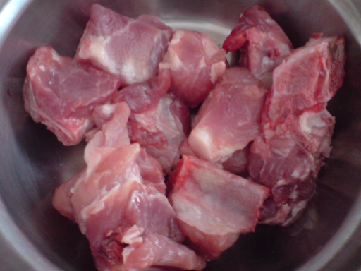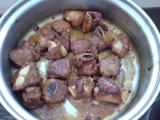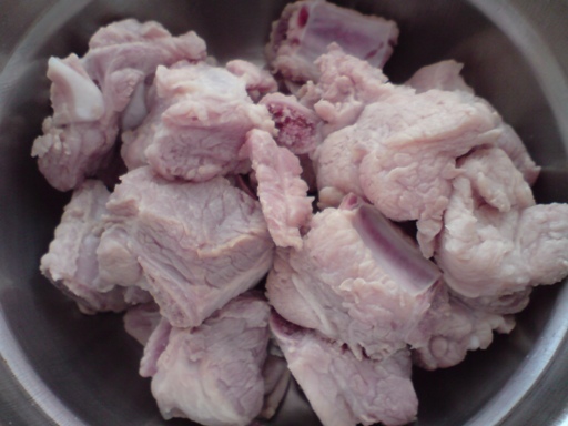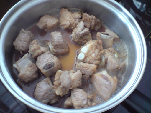 Put all the pork rib into the pan and cook it. It needs time for the pork rib to be cooked. Please be patient.