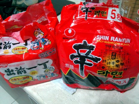 At current state, my favorite instant noodle will be the Nissin (original with sesame oil) and the Shin Ramen (spicy mushroom flavor). However, the price is not cheap over here. I bought some when I was in Singapore, and brought them back. The price in Singapore was at $2.19 and $3.75, if compare to RM6.50 and RM13.90.