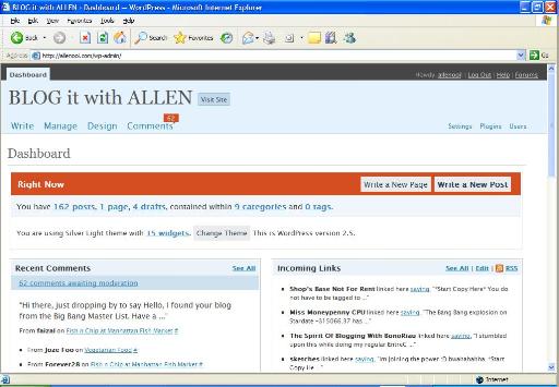 Just after I upgraded, I immediately go to the admin page for my blog. The interface looks great! I like the light blue. Oh, I just like it!